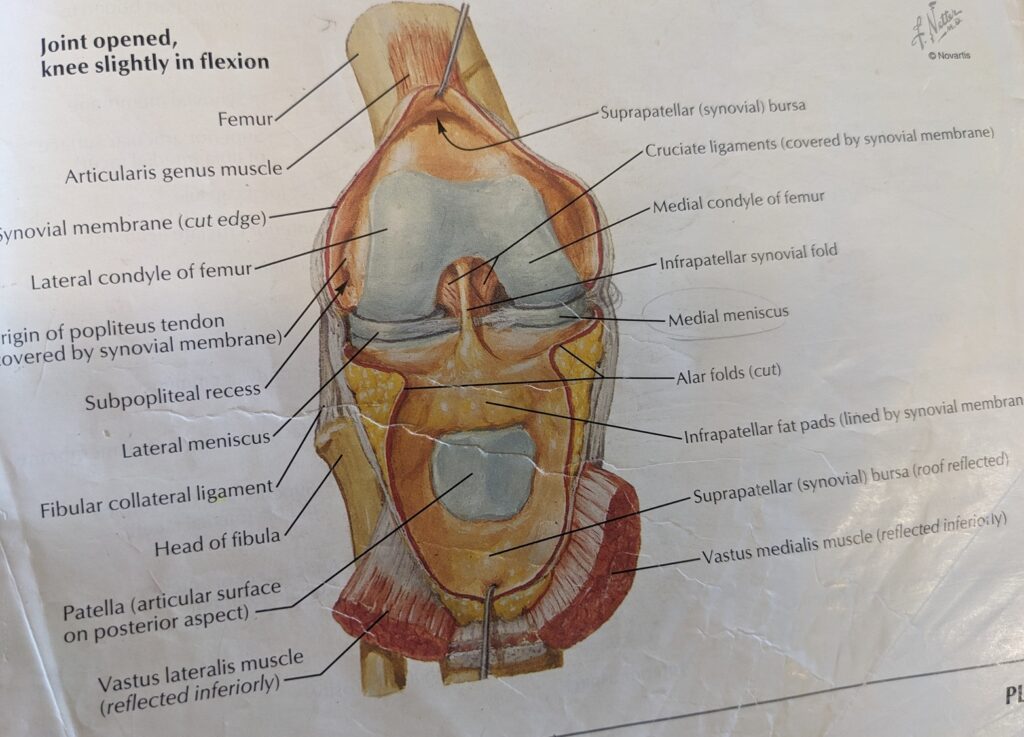 As you can see the above diagram, you can identify the ligaments, joint capsules, bursa, ligaments.