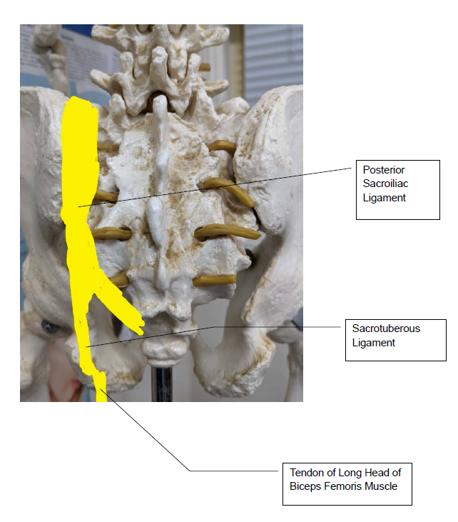 As you can see the above diagram, Ligament is a connective tissue connecting between bone and bone. In this case, the posterior sacroiliac ligament is connecting between Sacrum bone and Iliac bone and working together.